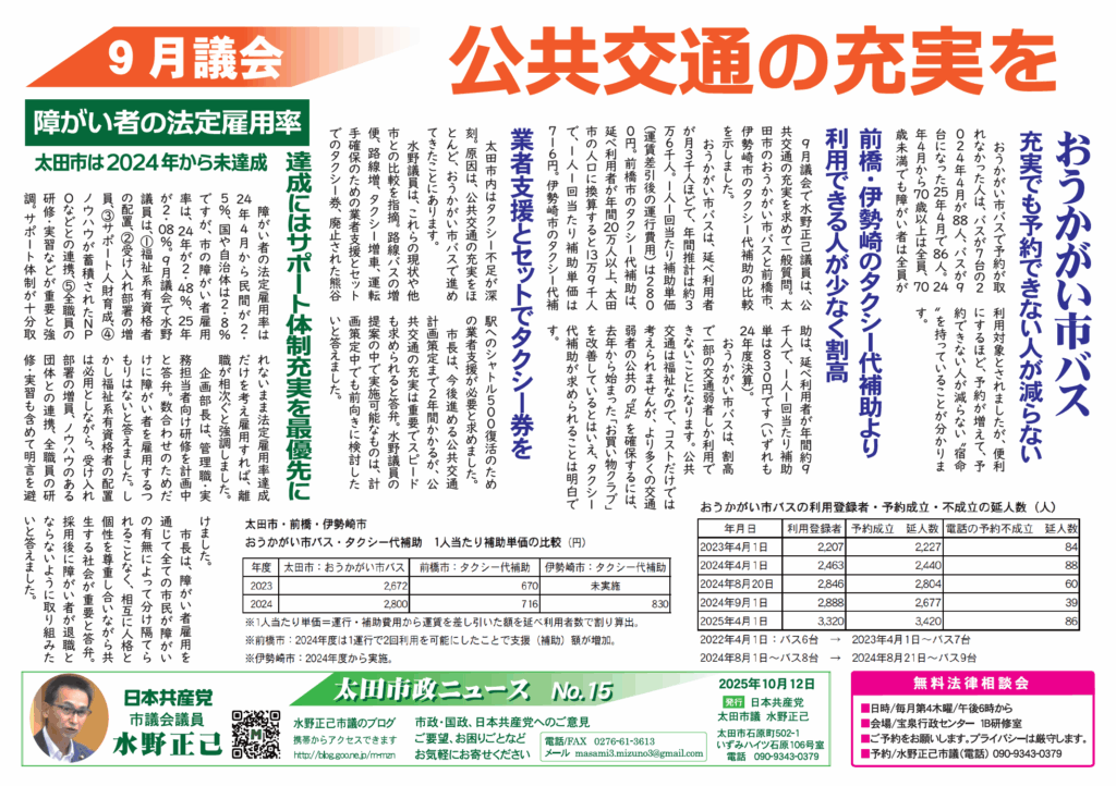 ●市政news/No15/2025年10月12日号●太田市9月議会・中継のページ 太田市議会の映像... -