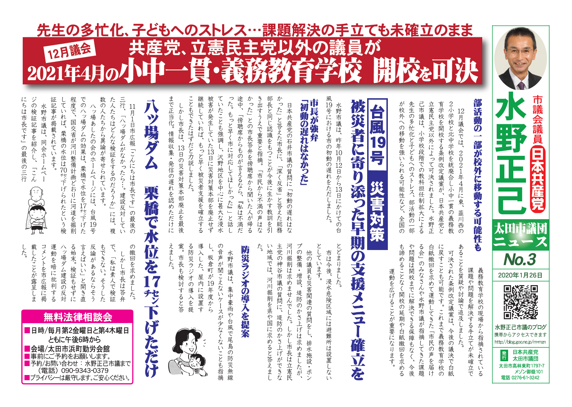 ●台風19号 災害対策 被災者に寄り添った早期の支援メニュー確立を 12月議会で一般質問/2020年1月30日/水野正己のブログ