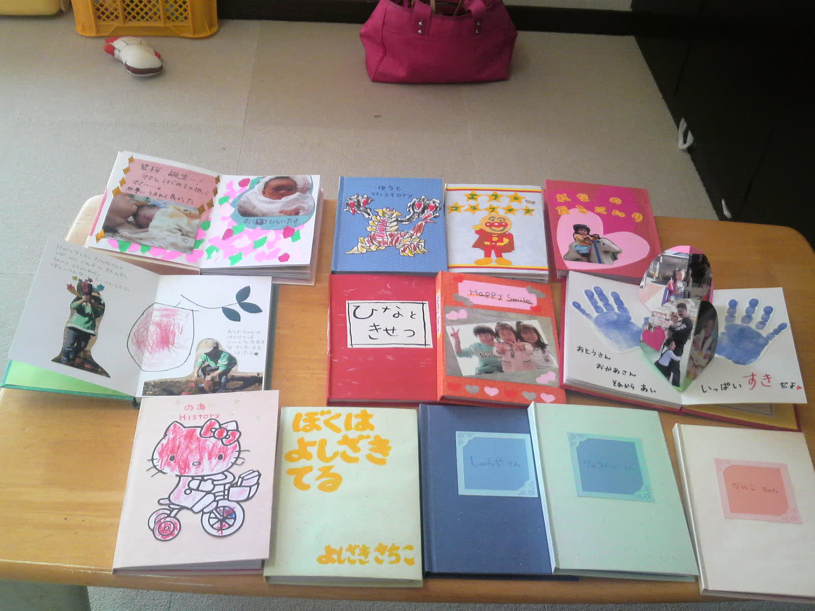11日にめだか保育園にうかがった際、父母のみなさんによる手づくり絵本を拝見してきました。