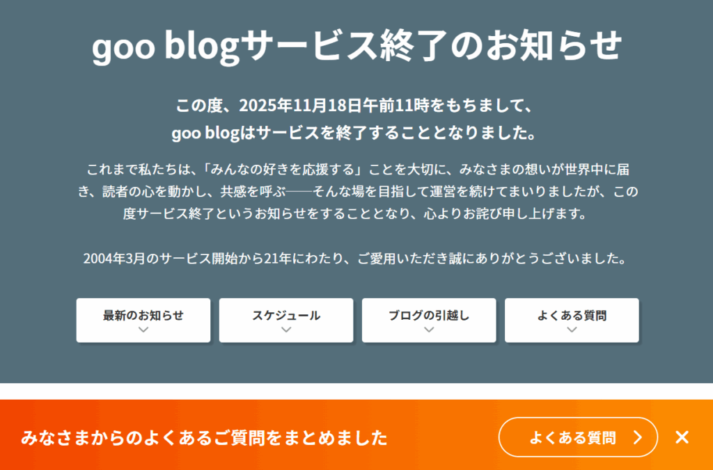 gooブログは11月18日午前11時でサービス終了なので、それまでに引っ越しできなかった記事や画像、リンク先URLがあれば…ごめんなさい。