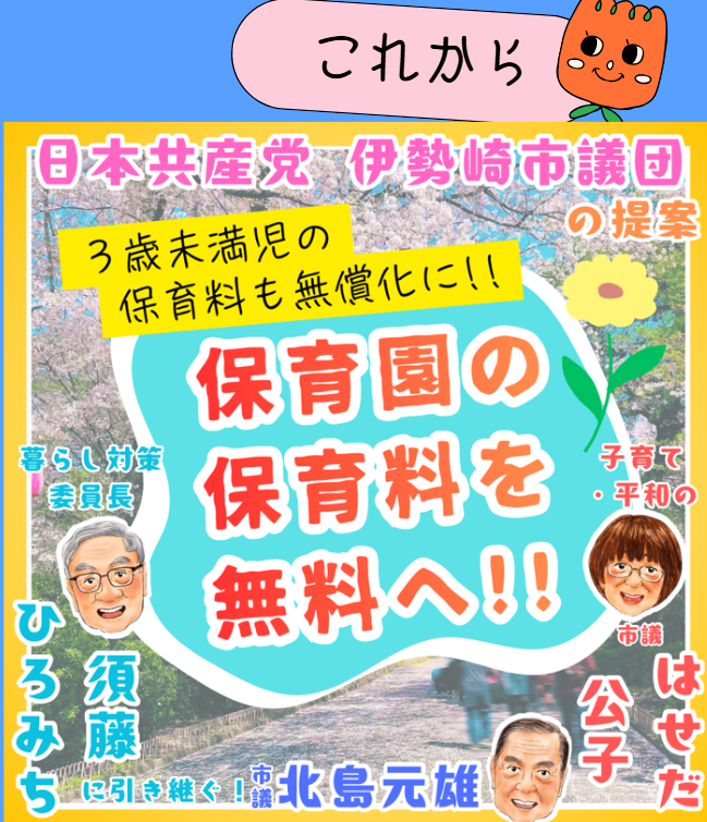 伊勢崎市議選 今度は0~2歳全員の保育料を無料に