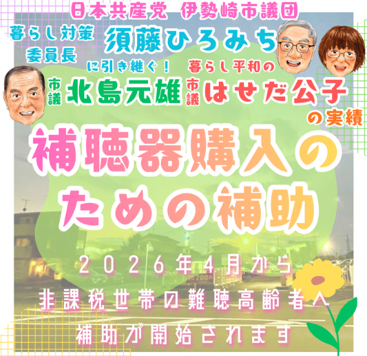 伊勢崎市議選 今度は課税世帯にも補聴器補助を