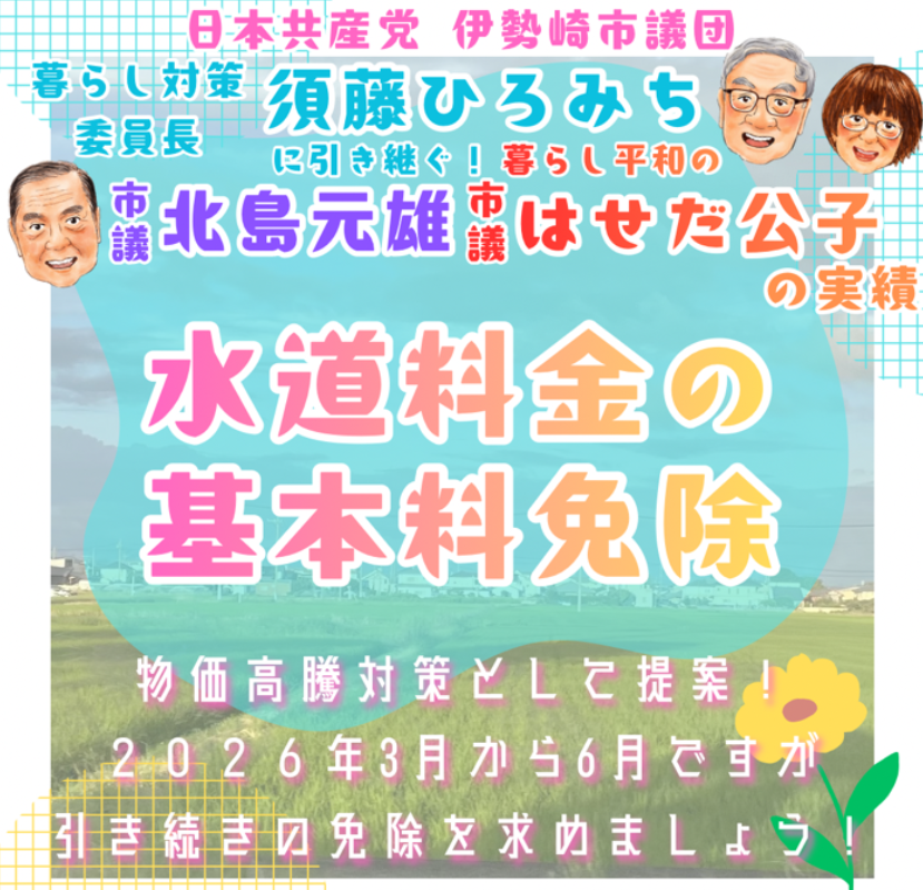 伊勢崎市議選 2026年度4カ月間水道基本料が無料に
