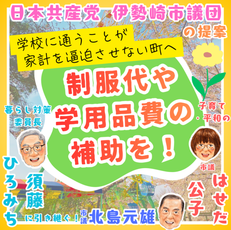 伊勢崎市議選 今度は制服代・学用品費の補助を