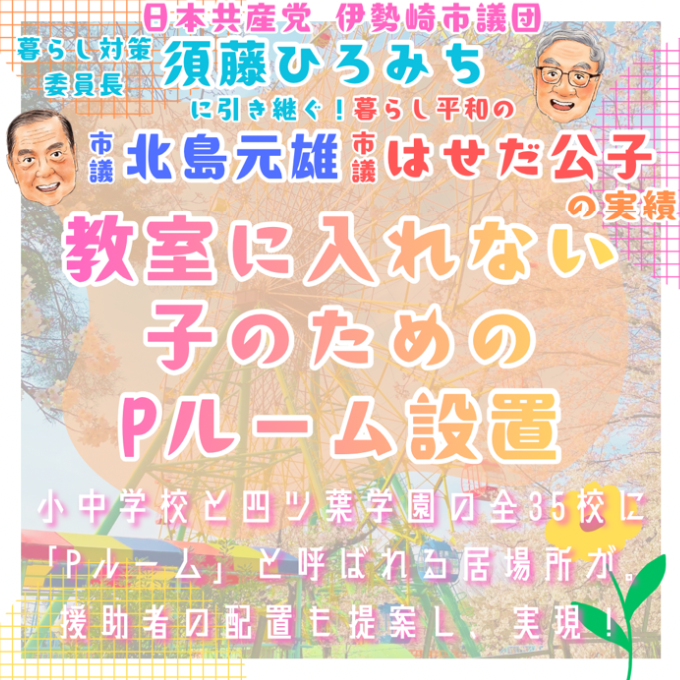 伊勢崎市議選 教室に入れない子のためのPルーム設置
