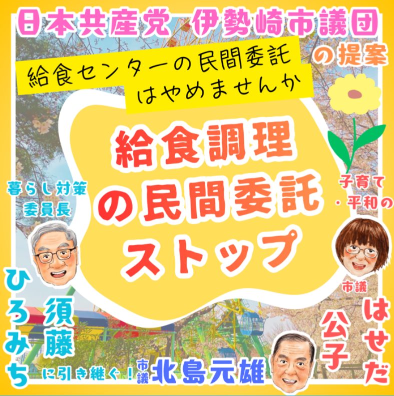 伊勢崎市議選 給食調理の民間委託ストップ!