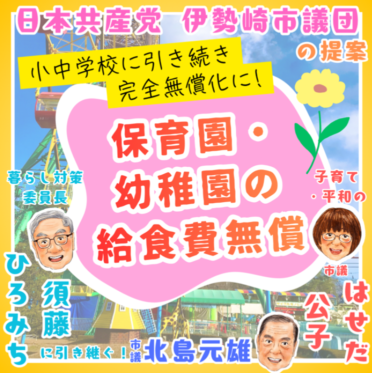 伊勢崎市議選 今度は保育園・幼稚園の給食を完全無料に