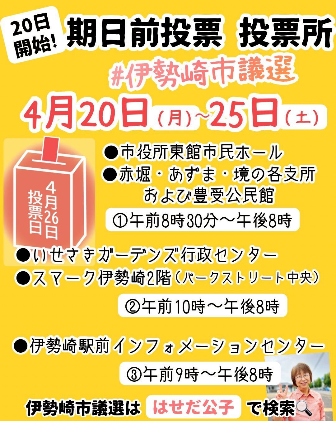 伊勢崎市議選 長谷田きみこに5票、10票広げてください