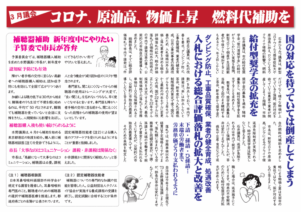 ●補聴器補助 新年度中にやりたい 予算委で市長が答弁/2022年3月13日/水野正己のブログ