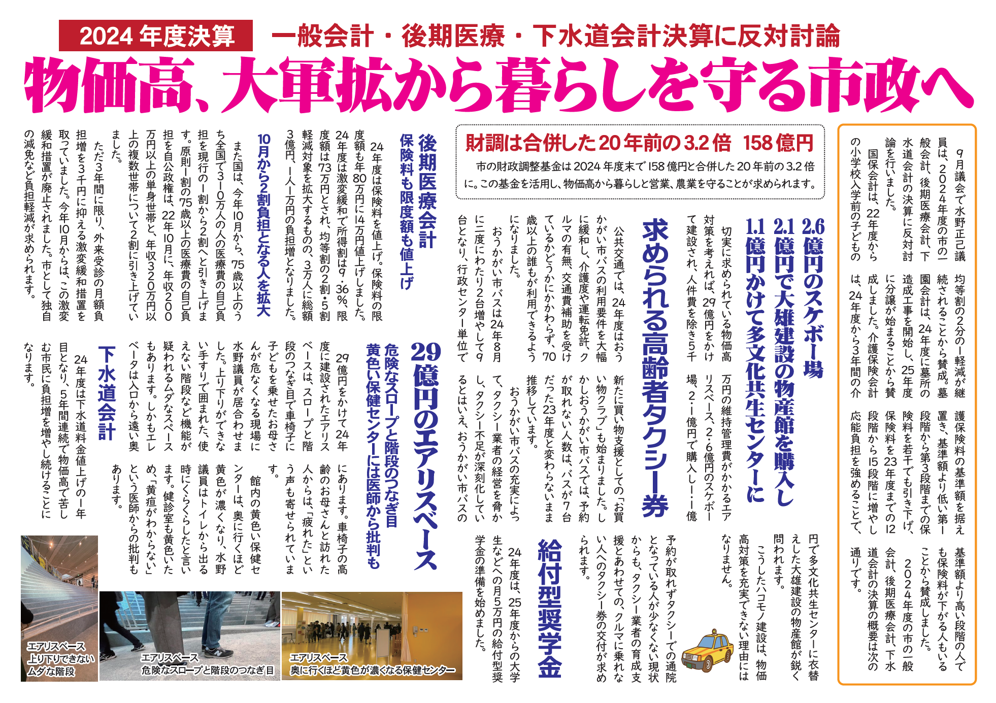 2024年度決算 一般会計・後期医療・下水道会計決算に反対討論
