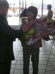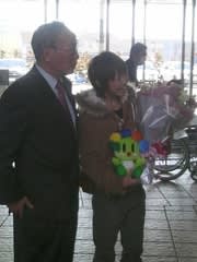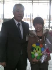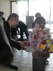 3月市議会本会議の休憩中、正午過ぎでしたので、市長はじめ職員、議員で歓迎して出迎えました。