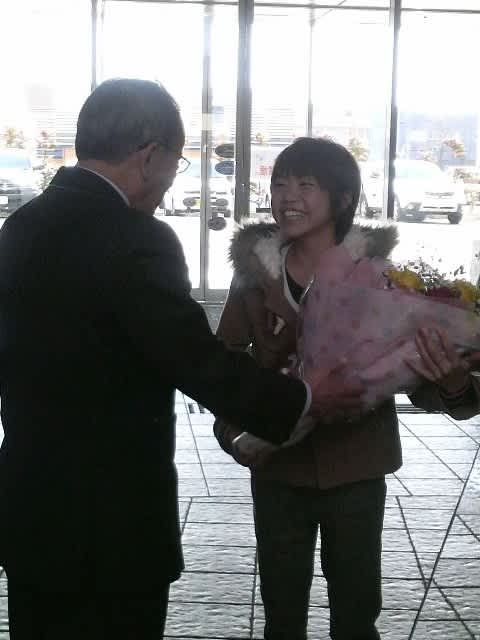 3月市議会本会議の休憩中、正午過ぎでしたので、市長はじめ職員、議員で歓迎して出迎えました。