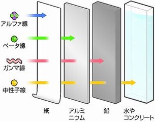 中性子線は、原子核が核分裂を起こしたときに放出される中性子です。中性子線は透過力が強く、遮るには水やコンクリートの厚い壁が必要です。