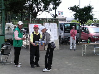 (写真)4位の賞品を受け取る石原1区Bチームの代表者