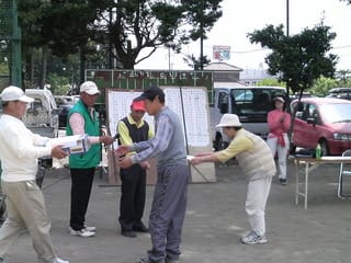 (写真)4位の賞品を受け取る安良岡町Aチームの代表者