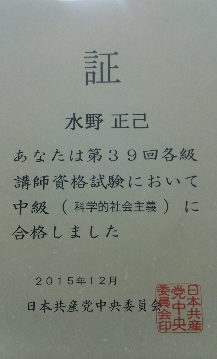 届きました。中級講師資格試験は16年くらい前に、当時は4課あって、初めて4課まで受けて運よく? 1課「綱領と政策」、2課「規約と党建設」、3課「党史」まで合格。でも4課「科学的社会主義」は数えきれないくらい落ち続けてました (^^; pic.twitter.com/aPWm0gLXkz