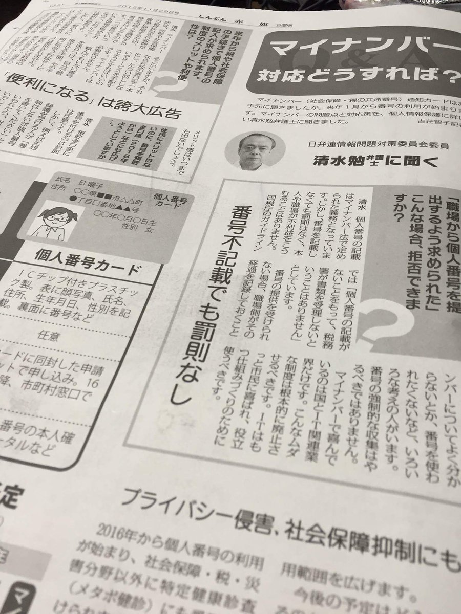29日付赤旗日曜版。税・社会保障関連の行政手続き書類にはマイナンバーの記入が義務付けられましたが、記入しなくても書類は受理され、国民にも雇用主にも罰則はなく不利益を受けることもありません。なお私はあえて通知カードを受け取ってません。 pic.twitter.com/oFIlU4iyJE