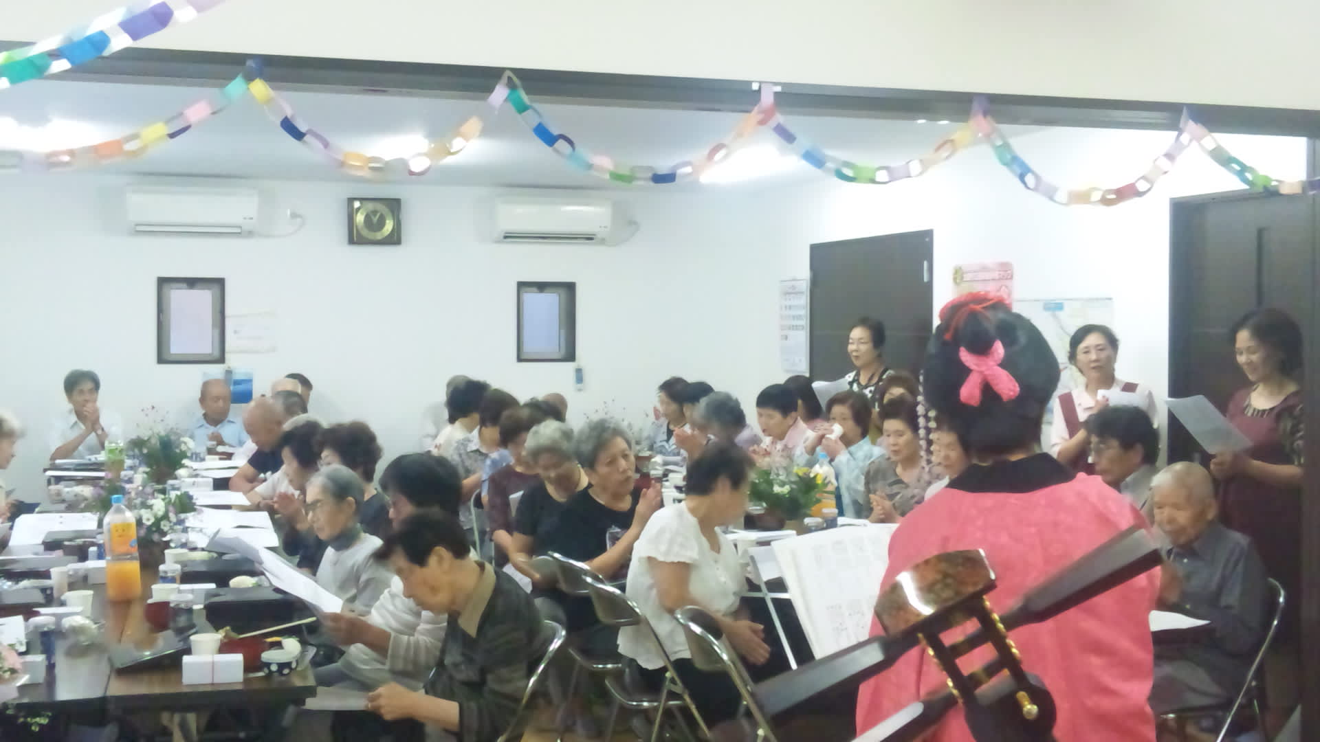 敬老会では、三味線の音色にあわせて参加されたご夫婦が熱唱する場面も。ところが、すいません。うっかりして、ご夫婦のツーショットを撮りそびれてしまいました。その後に奥さんが唄われたところは撮りましたが…。