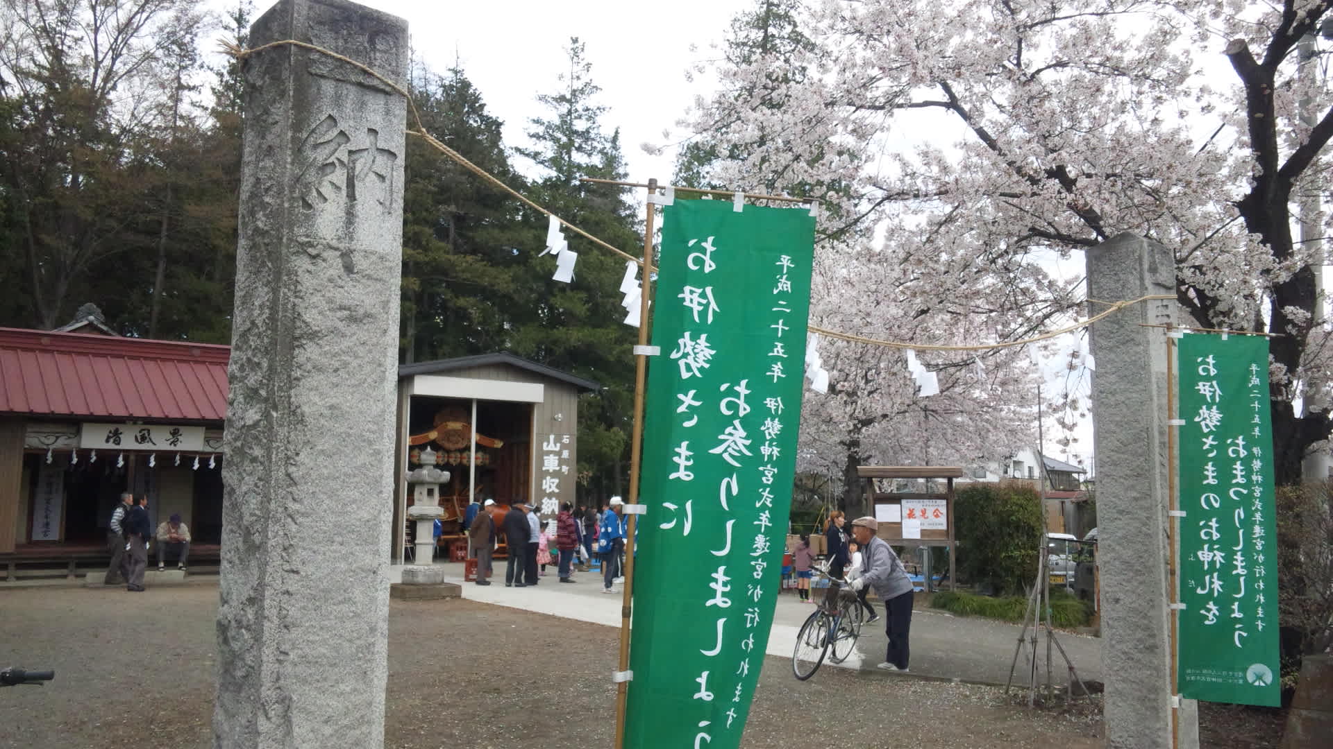 午前中は石原賀茂神社の春季大祭典が開かれ、境内には救命犬伝説にちなんで、「救命犬まつり」ののぼりがはためきました。