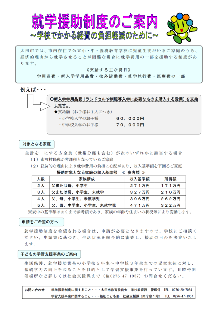 就学援助・入学準備金を増額 支給時期も前倒し 給食は第2子半額に
