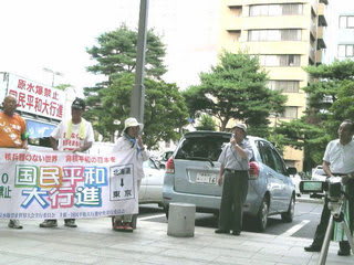 国民平和大行進・桐生行進団、館林行進団から太田行進団への引き継ぎ式が本日18日、午後4時30分から太田市役所前で行われました。
