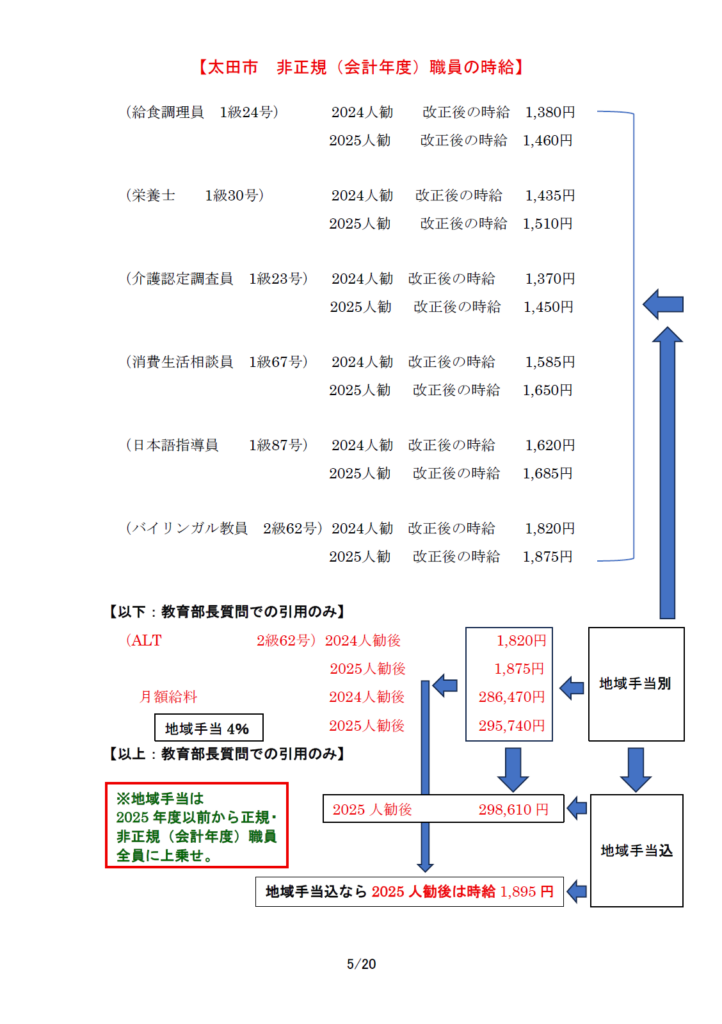 12月議会では、人事院勧告に準拠して、太田市の職員の給料・ボーナスを非正規の... -