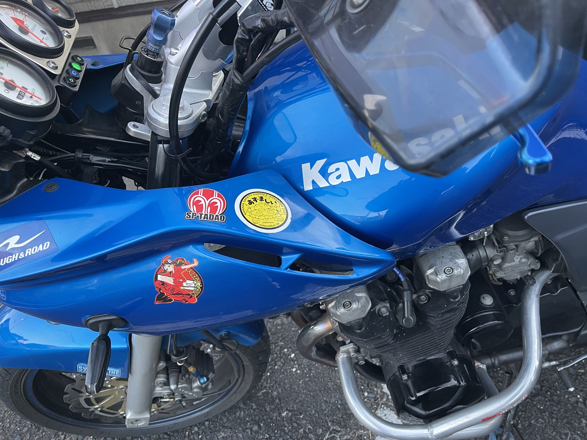 SP忠男のマフラーエンブレムが届いたのでなな(ZR7-S)に貼ってあげました。忠さんとこにはセブン用がないのでななのマフラーは純正ですが、熱狂的なSP忠男ファンなのでエンブレムだけでも貼りたいとずっと思ってたのがかないました。